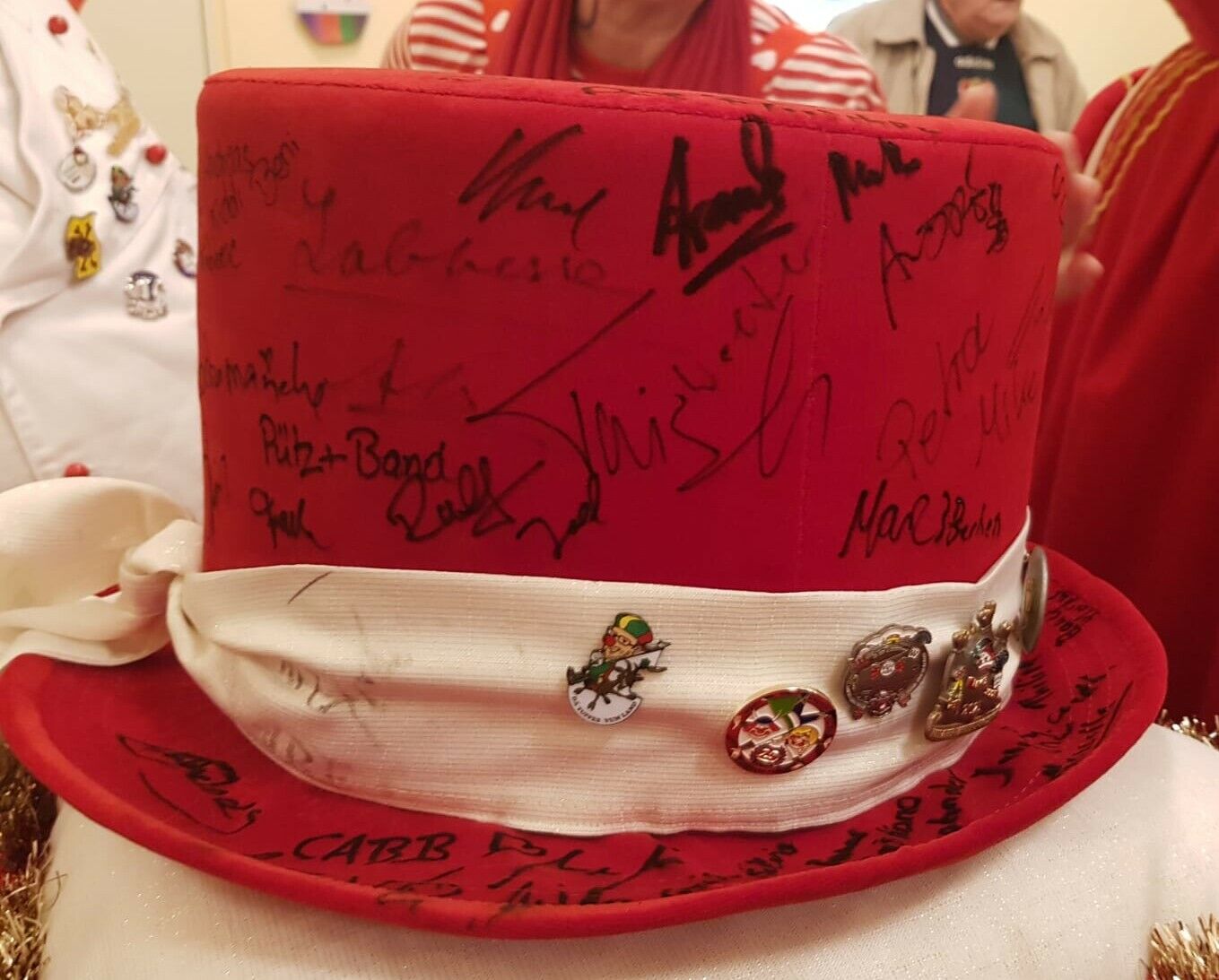 Jetzt mitbieten und gutes tun!Riesenhut mit Autogrammen und Pins der Session 2020