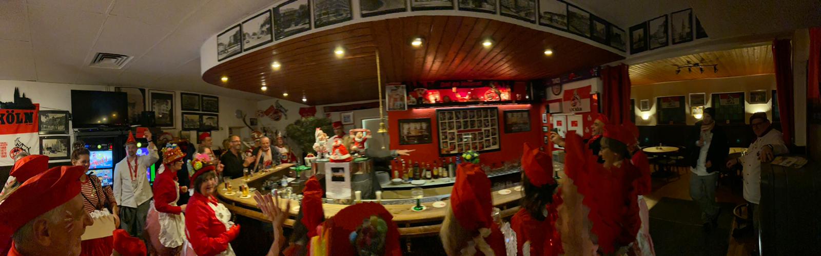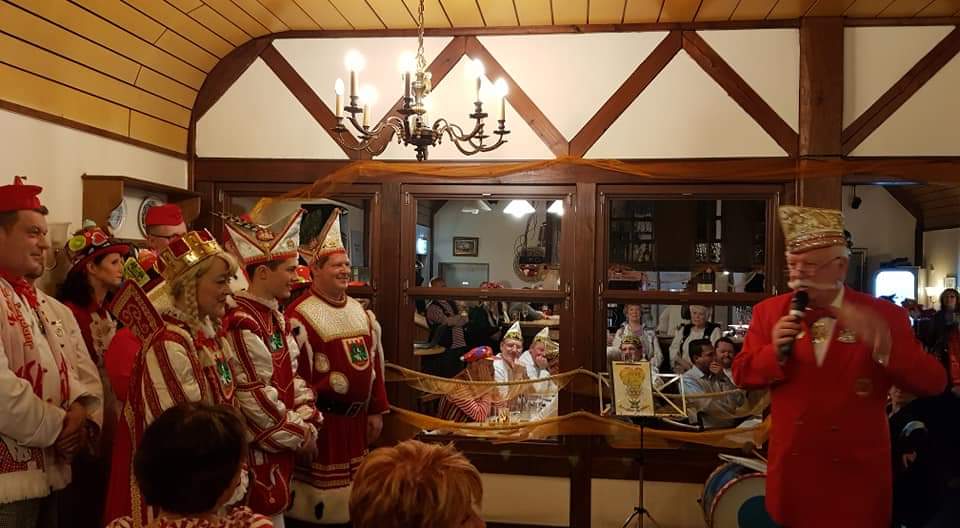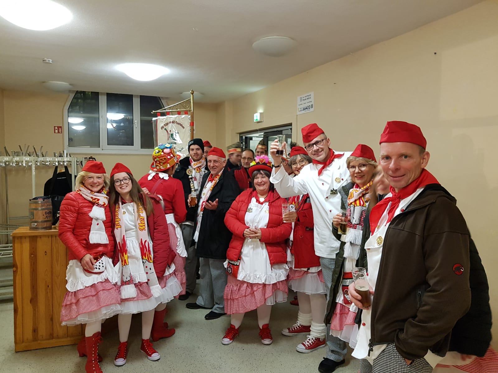 Erst einmal rockten wir die Hütte im Heidkamper Pfarrsaal, eingeladen vom Gardecorps rot-blau Schildgen e.V. Leider haben wir kein Foto von unserem Bühnenauftritt selbst :)