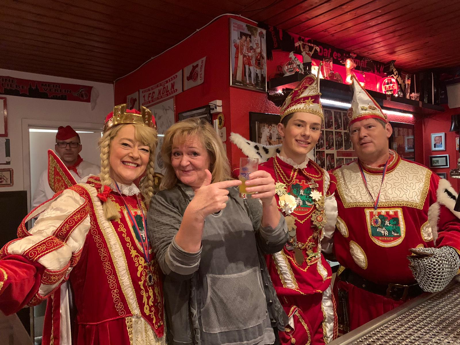 Im Anschluss ging es natürlich rüber in unsere Hofburg der Refrather Mühle, wo gerade J.P. Weber seinen Auftritt hatte. Danach kamen wir dran. Unser Prinz sang ein paar ruhige Kneipenliedchen. Und die Gäste, die Prinz Mike I. bis dato noch nicht singen gehört hatten, bekamen ziemlich erstaunte Gesichter.
